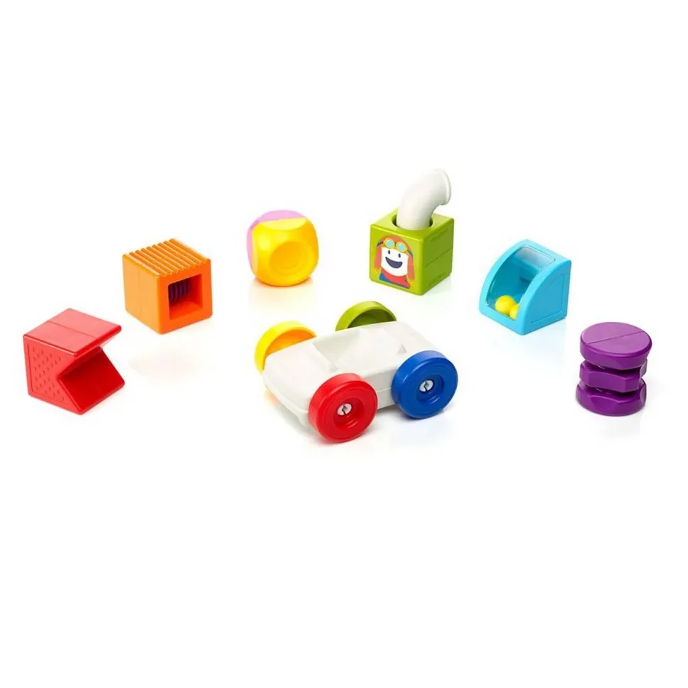 Retournez le socle du véhicule pour réaliser des défis plus difficiles. Devenez incollables sur le magnétisme, les couleurs, les formes, les angles ainsi que les concepts de dessus, dessous, gauche et droite. Combinez « My First Build & Drive » avec tous les autres SmartMax et développez votre motricité fine, équilibre et créativité. Des constructions à l’infini garanties !