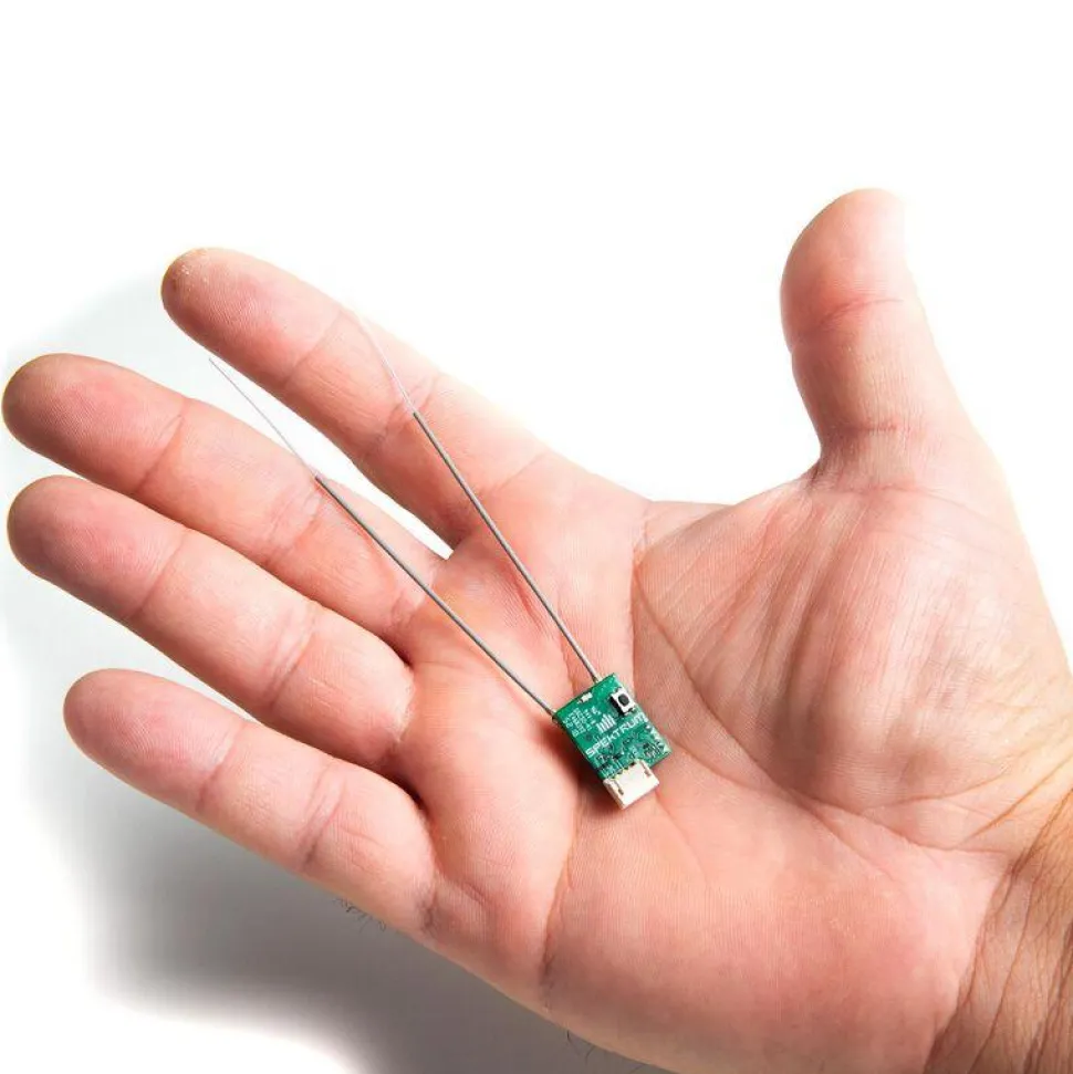 Ne pesant que 1,4 gramme et plus petit que n’importe quel récepteur série Spektrum précédent, le SPM4650 est prêt à être installé dans la plupart des types de construction multirotor et hélicoptère, quelles que soient les contraintes d’espace. Le récepteur est livré avec la prise désinstallée pour les passionnés qui cherchent à réduire le poids et l’encombrement. Fixez simplement les fils directement au PCB ou montez le connecteur et branchez le fil inclus du SPM4650 dans un contrôleur de vol compatible.