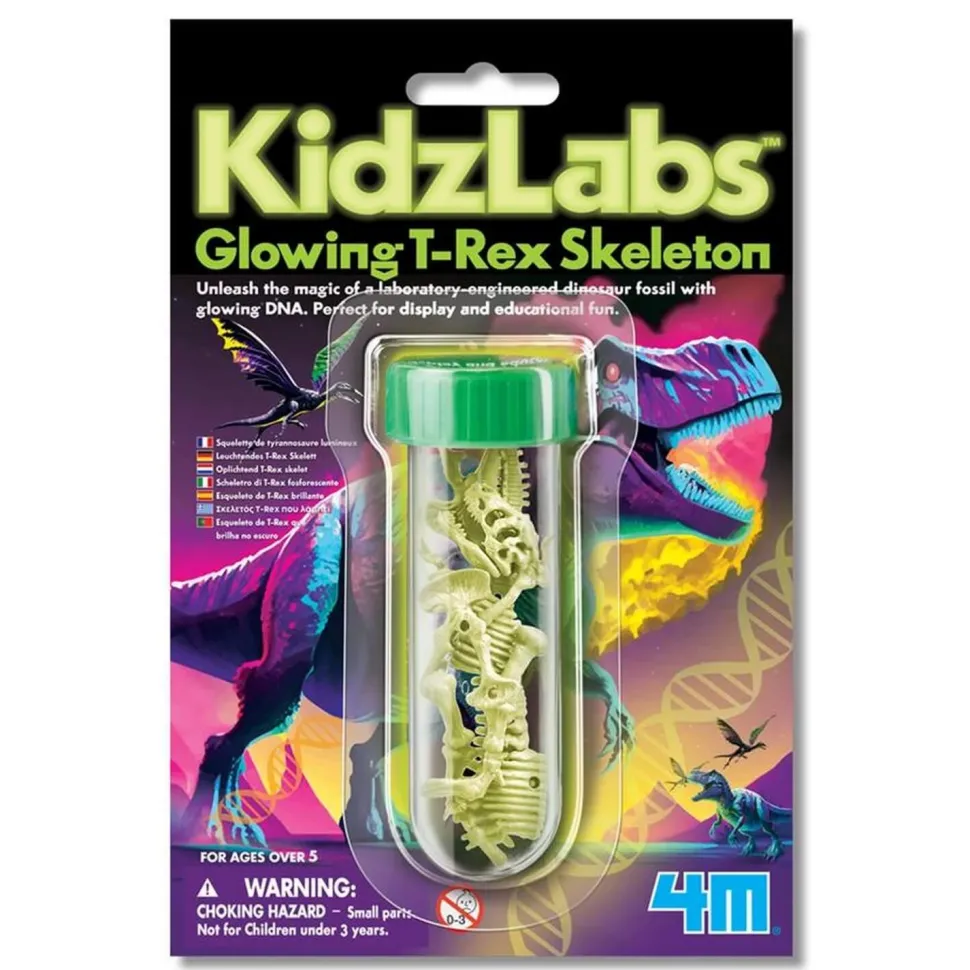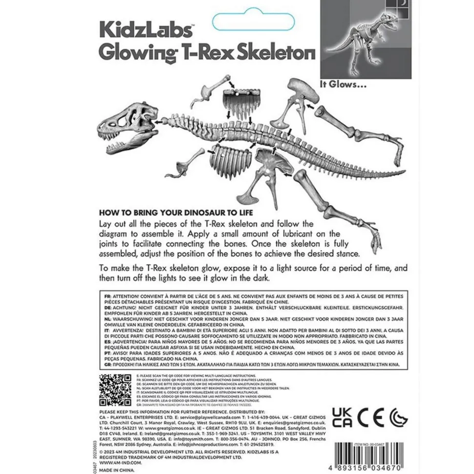 Assemblez ce mystérieux squelette de T-Rex Lumineux de la marque DAM ! Observez pièce par pièce les différentes parties du squelette d’un T-Rex, puis assemblées les afin de construire un squelette entier qui s’illumine dans le noir ! Afin de garder le squelette de T-Rex fluorescant il est conseillé de l’exposer quelque temps à la lumière.À partir de 5 ans.