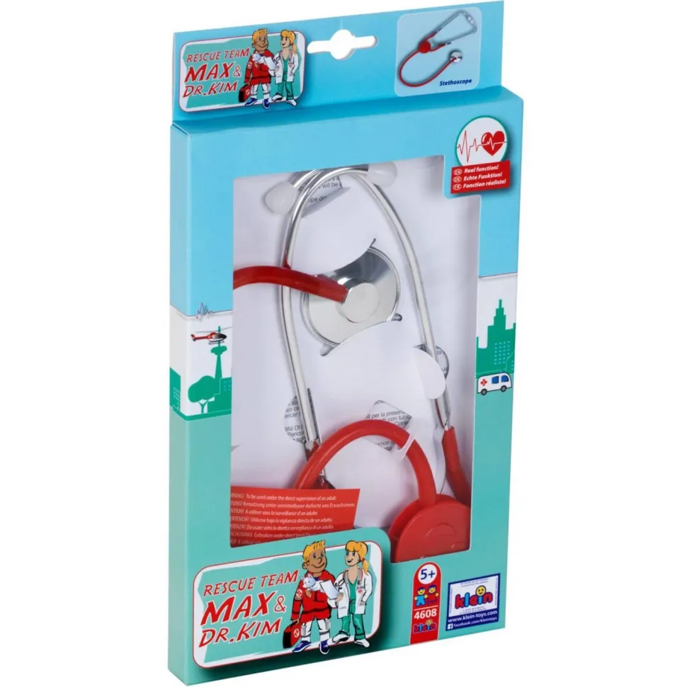 La célèbre marque Klein propose à un enfant ce superbe stéthoscope pour jouer au docteur.« Ouvrez la bouche et respirez bien fort ! » Avec ce jouet entre les mains, l’enfant sera ravi de jouer au petit médecin de famille. Il prendra soin de tous les habitants de la maison.Pour plus de réalisme, le stéthoscope produit des effets sonores. L’enfant pourra par exemple, entendre les battements du coeur du patient qu’il ausculte. Inclus dans la boîte :-Un stéthoscope métalDimensions : 15,5 x 28,2 x 2 cmÉquipé de son stéthoscope, l’enfant passera des heures à soigner les malades. Il adorera jouer le petit docteur en herbe et sera fier de guérir tout le monde.Ce jouet est en métal et résistera aux nombreuses manipulations de l’enfant.N’hésitez plus, et offrez ce superbe stéthoscope sonore très réaliste pour aider un enfant à soigner tout son entourage.