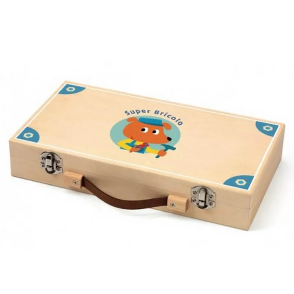 Retrouvez cette caisse à outils en bois pour vos bricoleurs en herbe.