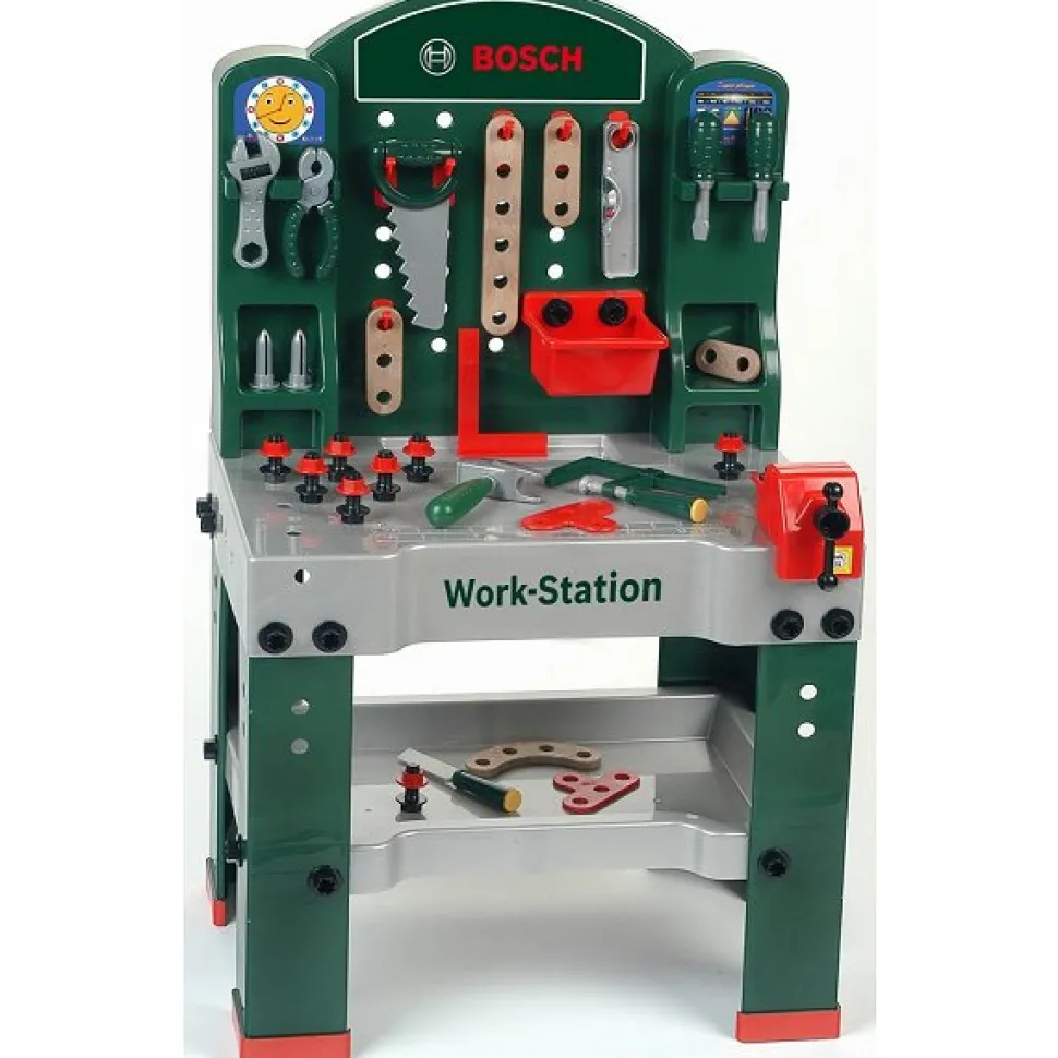 Super établi Bosch et accessoires en plastique – 100 cm.Le super établi idéal pour s’initier au bricolage.Il comprend : – 1 établi,- 1 plan de travail éducatif,- 1 étau,- 1 tournevis,- visseries,- plein d’autres outils…Hauteur de l’établi : 100 cm.
