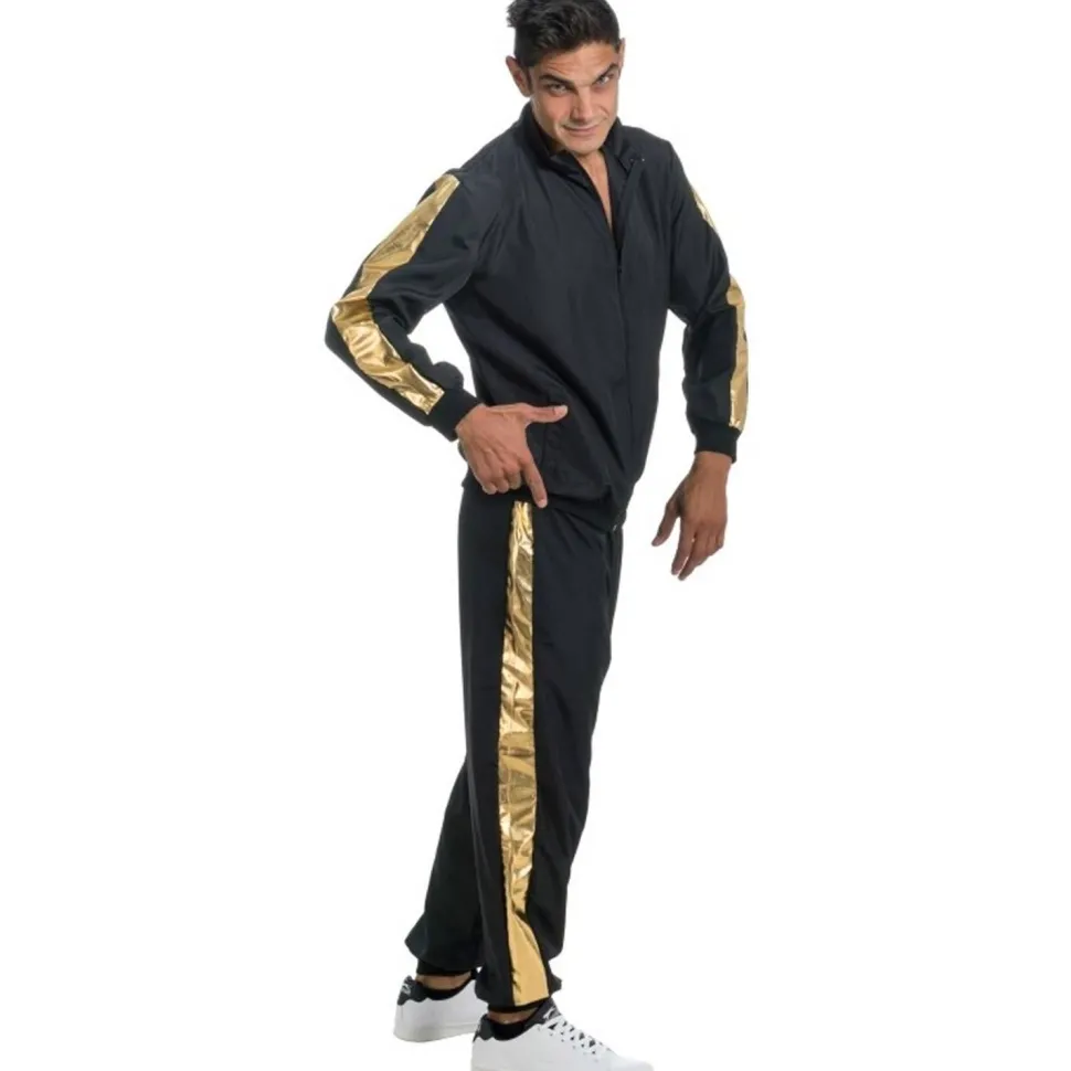 Déguisement Survêtement Rappeur banlieue, Noir avec large bande Or, comprenant la veste et le pantalon