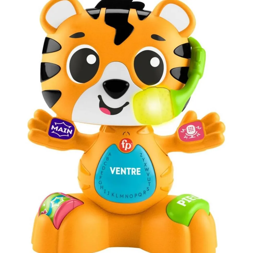 – Jouet d’éveil interactif en forme de tigre avec plus de 50 chansons, sons et phrases amusantes qui initient aux parties du corps, à l’alphabet et aux couleurs