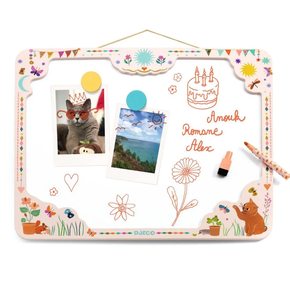 La marque Djeco présente le Tableau Magnétique, Chat ! Un ravissant tableau avec un cadre en bois pour écrire, accrocher des photos, aimanter des pièces magnétiques et décorer sa chambre. Contenu : un tableau magnétique et un marqueur effaçable avec capuchon aimanté. A partir de 5 ans.