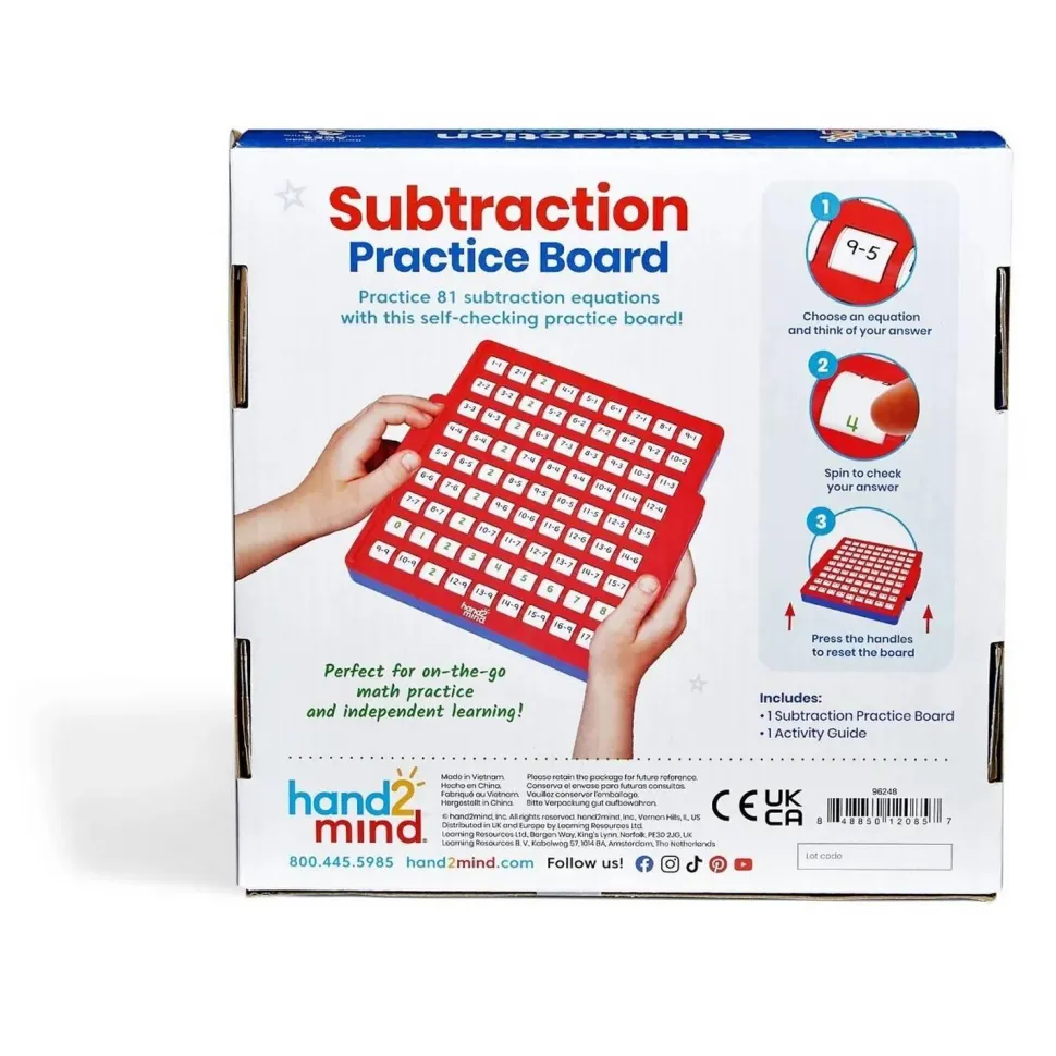 Les enfants apprécieront résoudre ses 81 soustractions à l’aide de ce tableau de pratique à autocontrôle de la marque Learning Ressources.