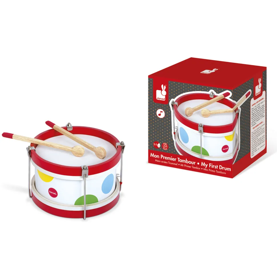 Pour battre le rythme ou pour jouez de la musique, avis aux musiciens, ce tambour vous attend. Confetti, c’est une gamme complète d’instruments de musique avec des motifs Pop N’ Rock ! Confetti éveille tous les sens et permet aux plus jeunes musiciens de s’initier aux joies de l’improvisation musicale. La peau est équipée d’une couche de feutrine pour optimiser la résistance. Livré avec 2 baguettes.Dimensions : 23 x 23 x 14.5 cm.