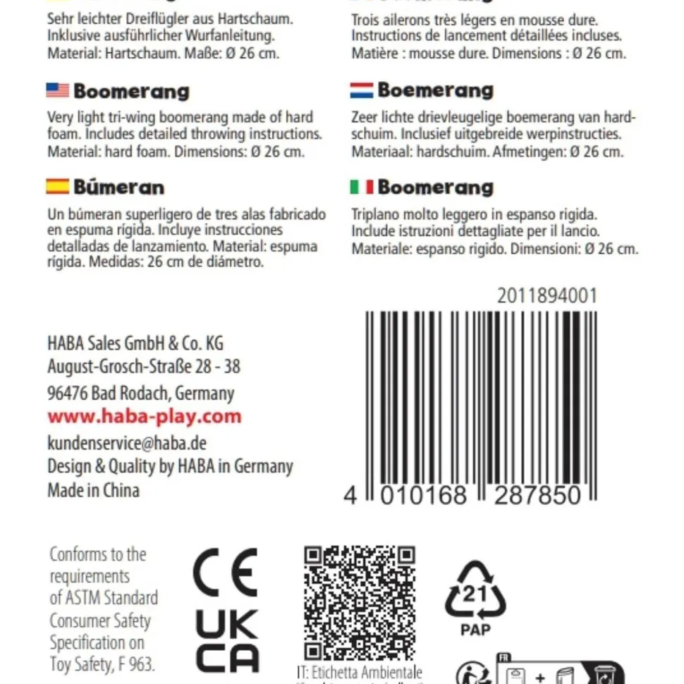 Contenu du jeu : 1 boomerang et 1 manuel d’utilisation