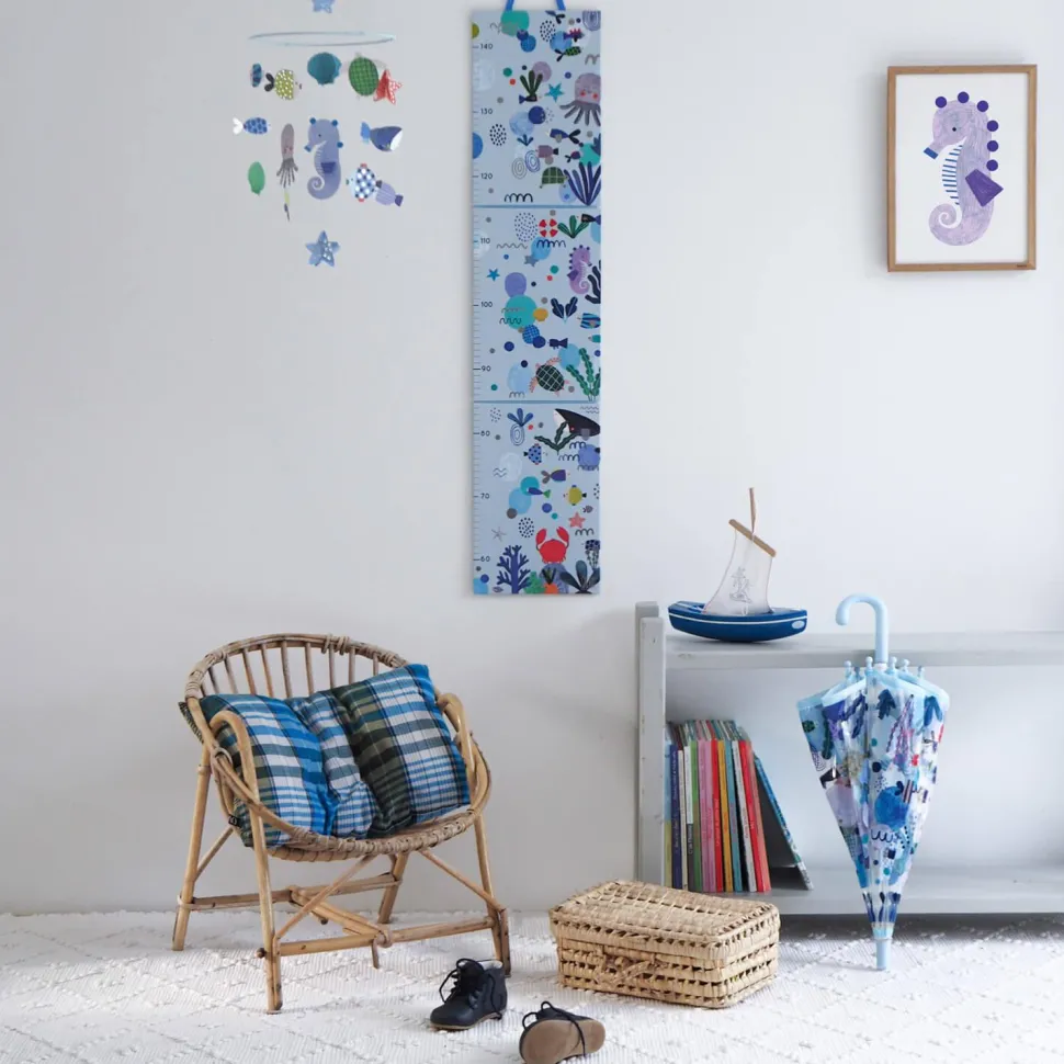 Une grande toise murale avec de nombreux stickers repositionnables sur le thème de la mer. Un bel objet de décoration idéal pour mesurer les enfants au fil du temps (jusqu’à 1,40 m). Et lorsque l’enfant est grand, on la range dans sa jolie boite pour un tendre souvenir.