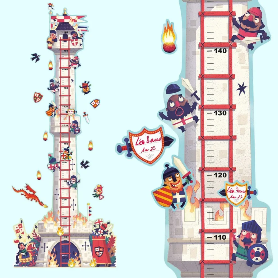 Pour faciliter la chose, découvrez la toise murale de chez Djeco qui permettra à votre enfant de se mesurer. Vous pourrez même l’assembler avec votre bambin afin de créer ce superbe chateau magique pour les petits garçons. Votre enfant s’amusera à décorer son chateau enflammé avec les 29 stickers inclus dans le coffret composé de chevaliers, d’épées et de boucliers, sa création sera donc unique.