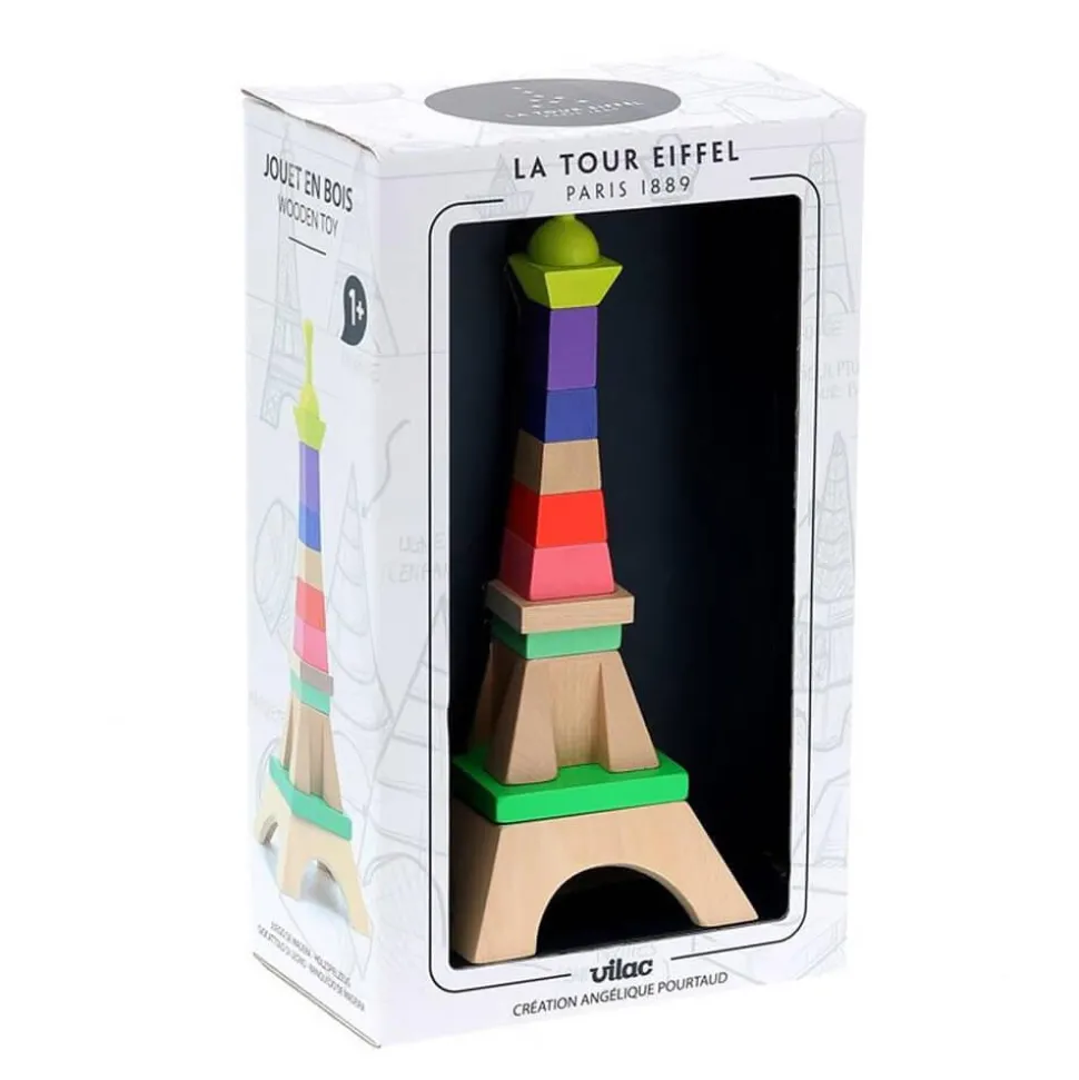 Jouet à empiler au design unique, de la marque Vilac conçu en collaboration avec la Tour Eiffel et une jeune designer pleine de talent.