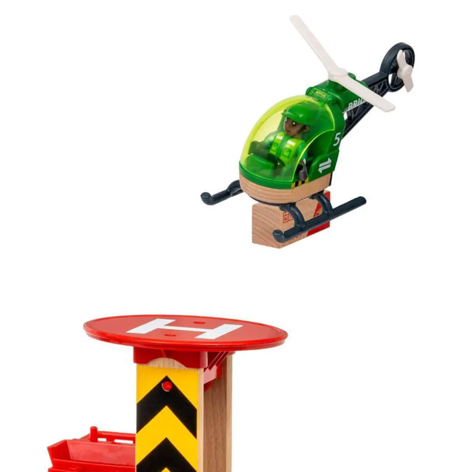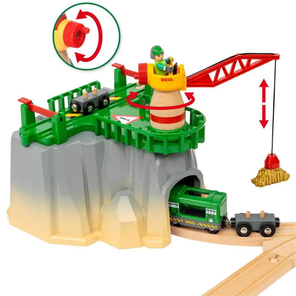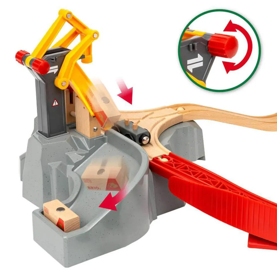 Le Circuit montagnes et chargement permet de jouer avec des grues et des actions de chargement sur 5 niveaux différents, de la zone d’atterrissage de l’hélicoptère aux grottes sombres des montagnes. Chacune des montagnes permet de créer toujours plus de circuits de trains, avec des hauteurs et des agencements différents. Utilisez l’hélicoptère, le train de transport de marchandises avec ses wagons ou le camion, pour vous aider à traverser et à travailler sur ce chantier dangereux.