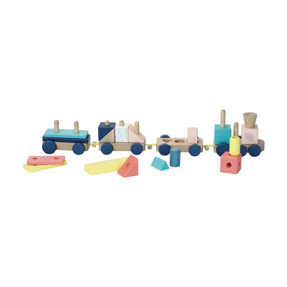 Découvrez ce super train en bois Vilac à construire aux couleurs naturelles et acidulées pour votre tout-petit.Ce train de la gamme Sous la Canopée de Vilac offre de jolies couleurs pour stimuler l’éveil de bébé. Ce train se compose de 4 wagons à assembler les uns aux autres et de pièces en bois de différentes formes à empiler sur ces wagons. Destiné aux plus petits à partir de 18 mois, ce jeu de construction favorise ainsi l’apprentissage de la motricité fine. Longueur du train : 56 cm environ.