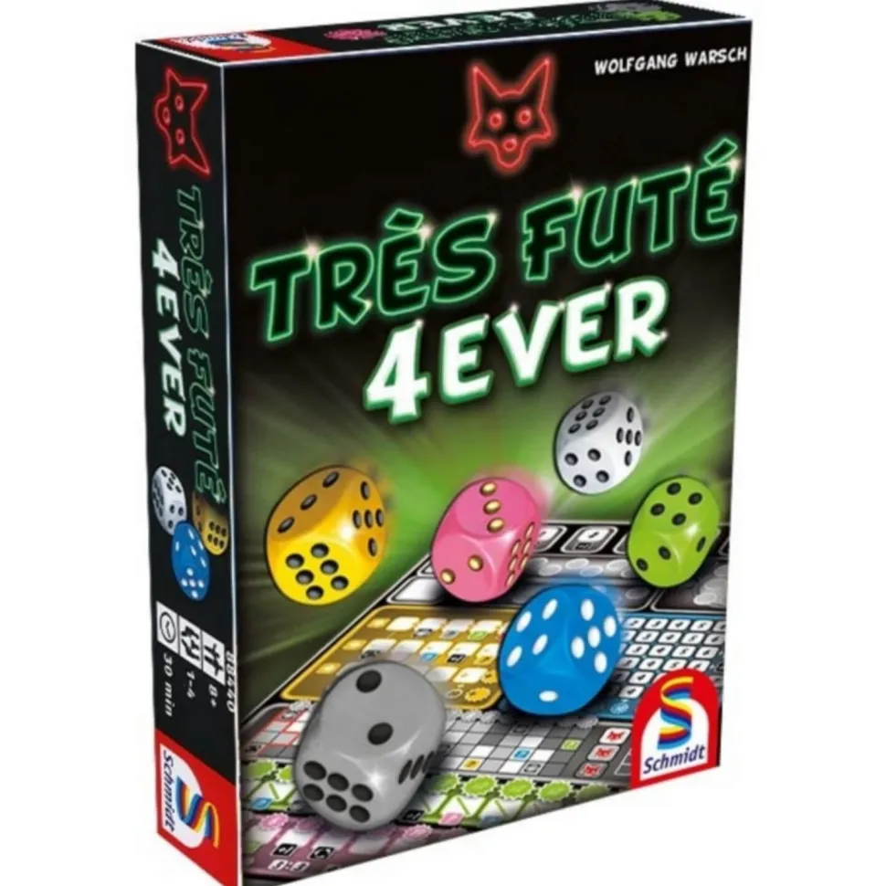 Dans le jeu Très Futé!, il s’agit de choisir les dés ingénieusement. Car lorsqu’ils sont utilisés habilement, ils peuvent entraîner d’astucieuses réactions en chaîne. Le résultat du dé choisi doit toujours être noté dans la zone de couleur correspondante et rapporte des points. Les joueurs ne doivent pas ignorer les dés qu’ils laissent inutilisés. Car chaque dé affichant un résultat inférieur au dé choisi sera présenté aux adversaires sur un plateau d’argent…