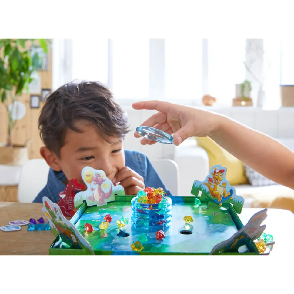 Découvrez ce jeu de collecte étincelant sur le thème des dragons pour 2 à 4 joueurs à partir de 5 ans. Les jeunes dragons ont découvert un trésor de glace extraordinaire : une colonne glacée contenant des pierres étincelantes. Bien sûr, ils meurent tous d’envie de les prendre. Avec l’aide de papa dragon, les joueurs retirent les anneaux gelés les uns après les autres et font fondre la colonne glacée. Voilà que les pierres étincelantes dégringolent ! Mais attention : ils ne peuvent pas tout ramasser. Qui aura le plus de pierres étincelantes à la fin de la partie ?Ce jeu élu jeu de l’enfant de l’année 2018 en Allemagne est parfait pour passer un super moment entre amis ou en famille, il permet de développer l’agilité, l’attention et la patience de votre enfant Ce jeu fabriqué en Allemagne contient 4 jeunes dragons, 9 anneaux glacés, 90 pierres étincelantes (18 de chacune des 5 couleurs), 1 tuile « bloc de glace », 1 papa dragon, 5 tuiles « pierre étincelante’, 1 plateau de jeu, 1 partie inférieure de la boîte avec 4 parois séparatrices, 1 règle du jeu multilingue.Une partie dure environ 15 minutes.