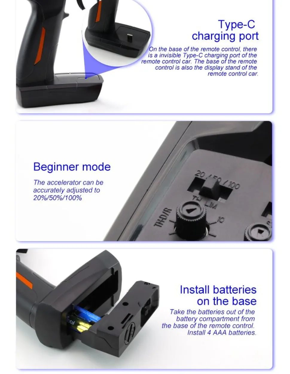 4 piles AAA, non incluses pour la radiocommande