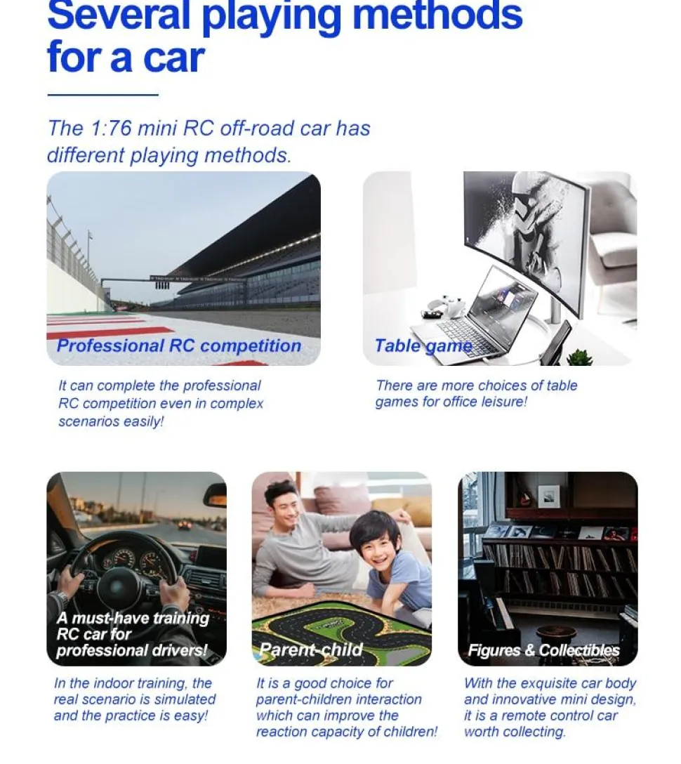 Sa taille miniature vous permet de vous amuser sur un bureau ou une table seul, entre amis ou en famille avec des pilotes débutants ou confirmés.