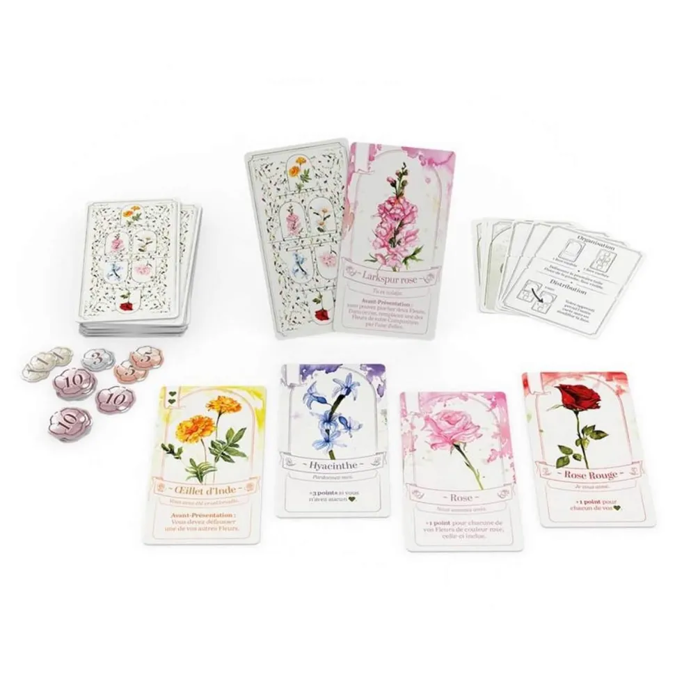 Plongez-vous dans une ambiance feutrée des salons de thé anglais de l’époque ! La coutume veut qu’entre amis et amants, pour témoigner de l’affection, chacun s’offre des bouquets de fleurs qui doivent être soigneusement composés car chaque fleur a une signification bien distincte. De 1 à 4 joueurs, votre but sera donc de composer le plus beau bouquet dans un jeu d’échange de cartes (draft) ! A partir de 8 ans, malgré l’aspect élégant et détendu du jeu, il faudra que vous soyez stratège afin d’avoir le plus beau bouquet et donc de remporter la partie.