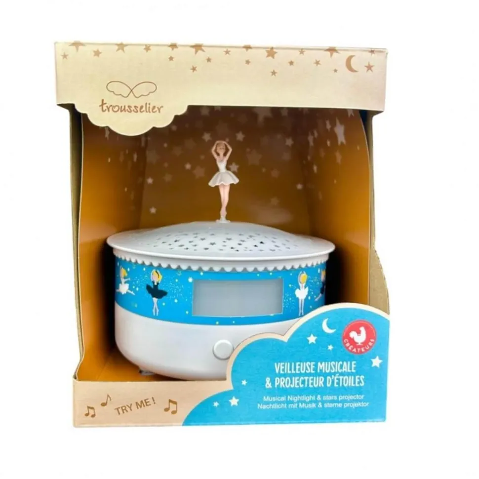 La veilleuse musicale Projecteur d’Étoiles Ballerine de la marque TROUSSELIER est l’accessoire idéal pour rassurer et émerveiller votre enfant à l’heure du coucher.