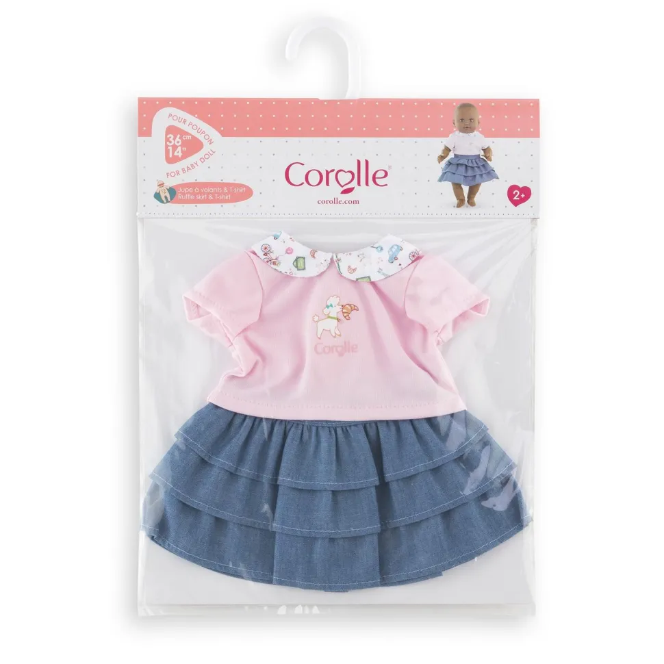 La Jupe À Volants et le T-Shirt Week-End À Paris est l’ensemble élégant pour les grands poupons de 36 cm mon grand poupon Corolle.
