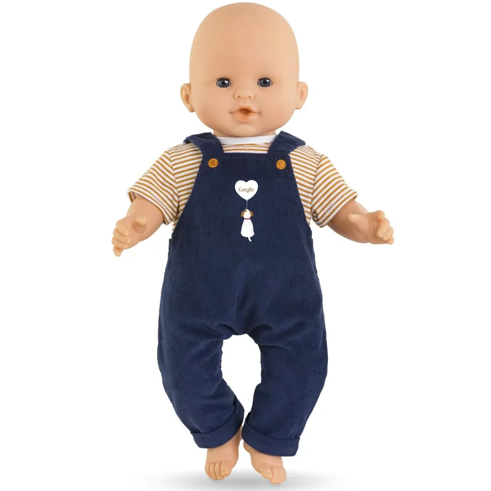 Pour une tenue décontractée, l’ensemble T-shirt et Salopette Marine est le vêtement idéal pour les grands poupons de 36 cm mon grand poupon Corolle.