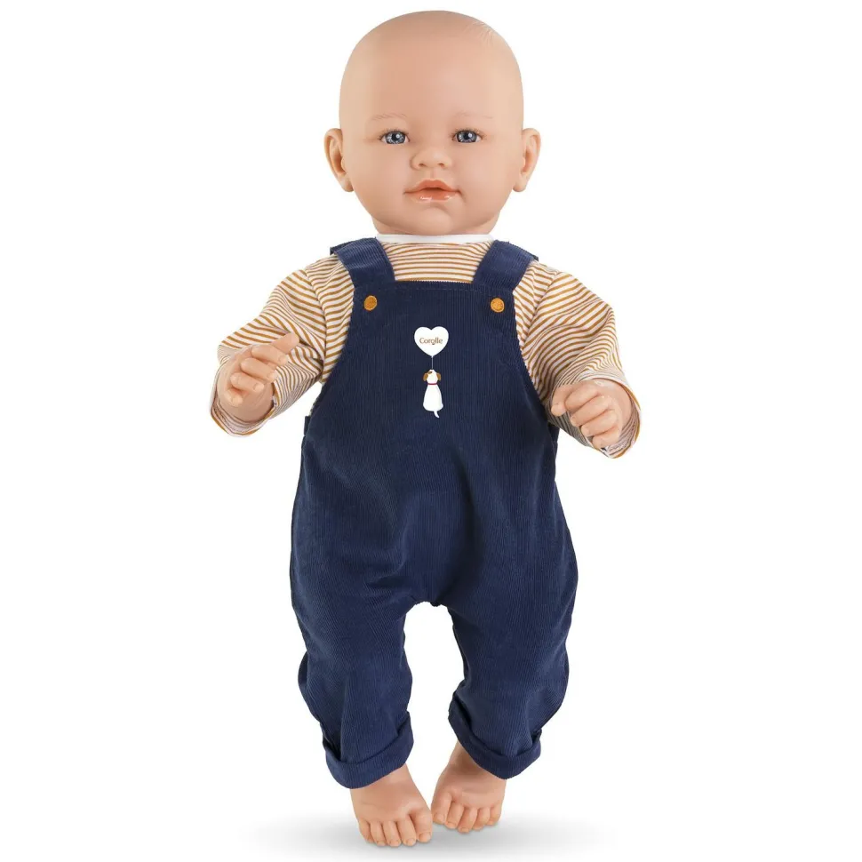Pour une tenue décontractée, l’ensemble T-shirt et Salopette Marine est le vêtement idéal pour les grands poupons de 42 cm mon grand poupon Corolle.