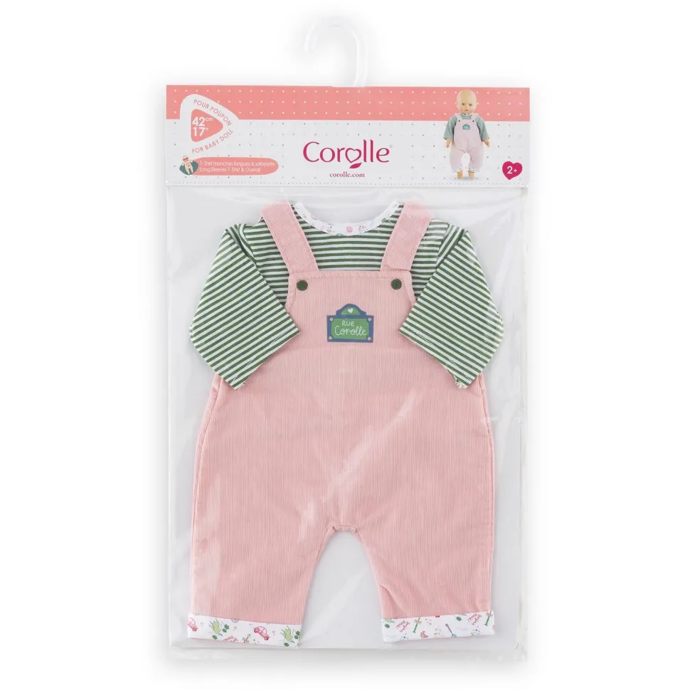 Pour une tenue décontractée, l’ensemble T-shirt et Salopette Week-End À Paris est le vêtement idéal pour les grands poupons de 42 cm mon grand poupon Corolle.