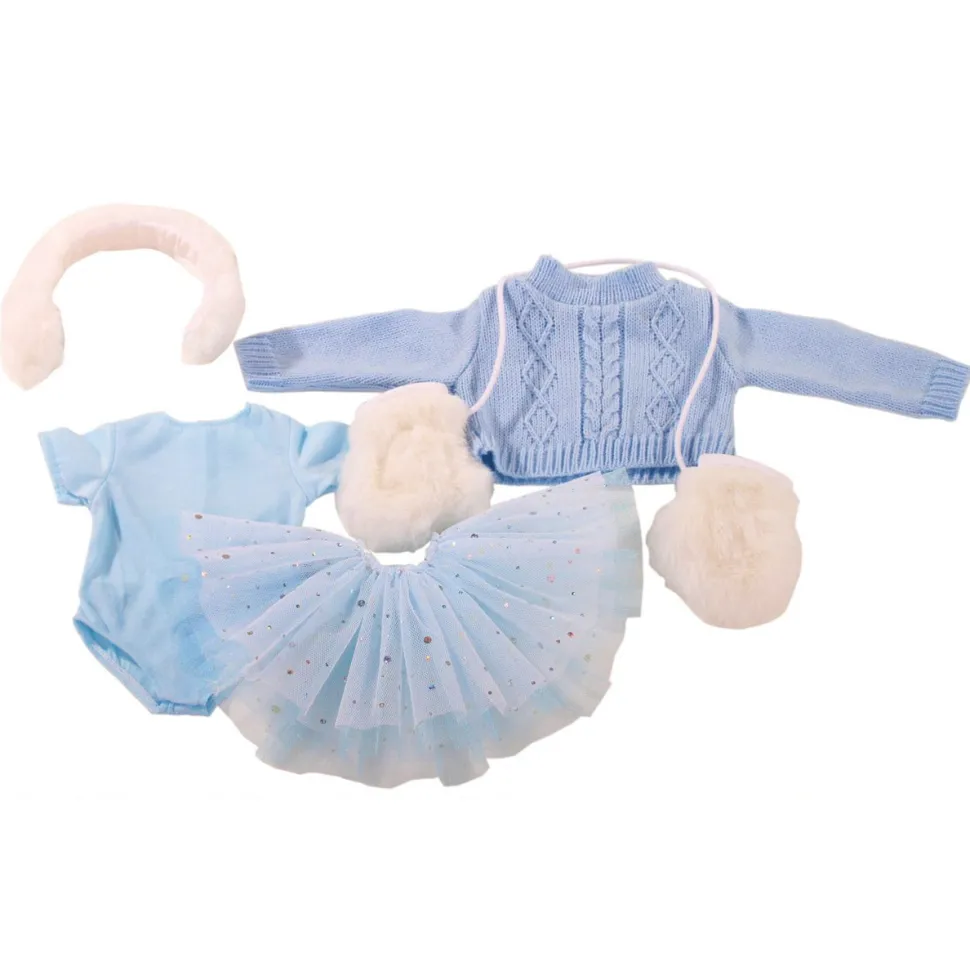 Une très bel ensemble hivernal pour que votre poupées soit à la pointe de la mode quand les températures sont au plus bas ! Cet ensemble, qui se range sur cintre dans une jolie housse transparente avec fermeture éclair, comprend : – un body bleu- une jupe en tulle constellée de paillettes – un pull en laine bleu- un serre-tête en fourrure blanche – une paire de moufles en fourrure blancheIl convient parfaitement à toutes les poupées mesurant entre 45 et 50 cm, comme les modèles Hannah, Precious Day, Happy Kidz et Classic Kidz.Dimensions de la housse : L24 x H35 cm.Les vêtements pour poupées Götz Épousant les dernières tendances de la mode, ils comportent autant de petits détails que les vêtements pour enfants. Naturellement ils peuvent être lavés (en machine à 30°) et repassés pour que votre poupée soit irréprochable en toutes circonstances.