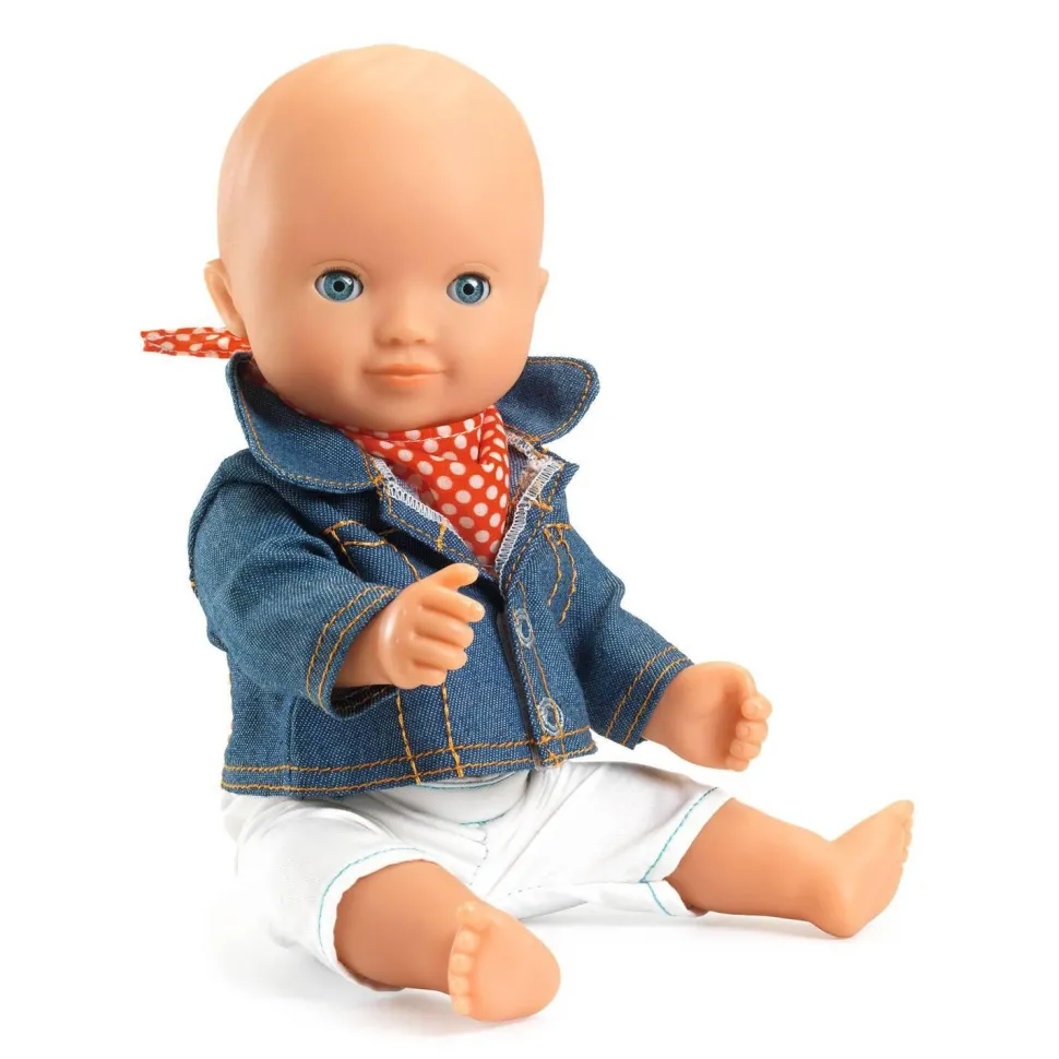 La marque Djeco présente Vêtement pour poupée, Tenue Blue Jacket ! Le blouson en jean est la pièce essentielle à avoir dans sa garde-robe. On l’associe à une petite robe, un pantalon ou même un jean pour le total look. Et avec un foulard style « bandana », c’est encore mieux. Vêtements avec scratch pour faciliter l’habillage et lavables en machine à 30°. Adapté aux poupées Lovely POMEA de 32 cm non-incluses. Contenu :1 blouson en jean, 1 foulard. A partir de 18 mois.