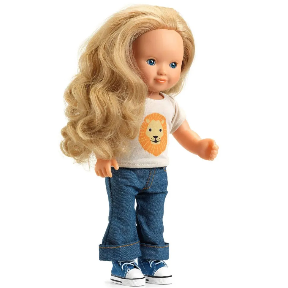 La marque Djeco présente Vêtement pour poupée, Tenue Ivory ! Ensemble qui habillera aussi bien les filles que les garçons. Composé d’un pantalon en toile de jean aux larges revers et d’un t-shirt à manches courtes en jersey couleur ivoire imprimé d’un magnifique lion. Vêtements avec scratch pour faciliter l’habillage et lavables en machine à 30°. Adapté aux poupées Lovely POMEA de 32 cm non-incluses. Contenu : 1 pantalon en jean, 1 t-shirt manches courtes. A partir de 3 ans.