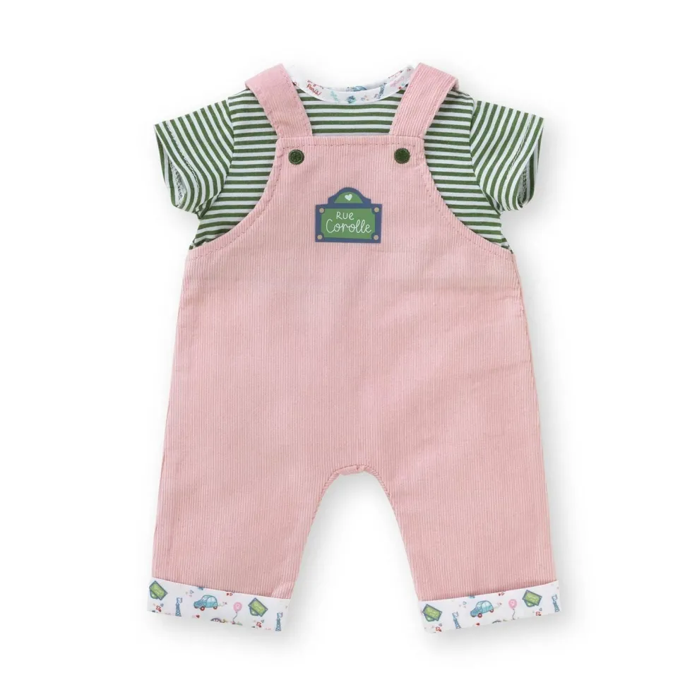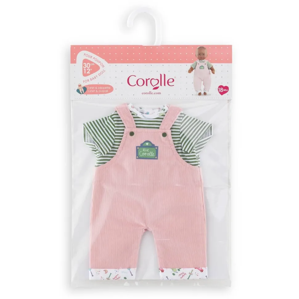 Pour une tenue décontractée, l’ensemble T-shirt et Salopette Week-End À Paris est le vêtement idéal pour les petits poupons de 30 cm mon premier poupon Corolle.