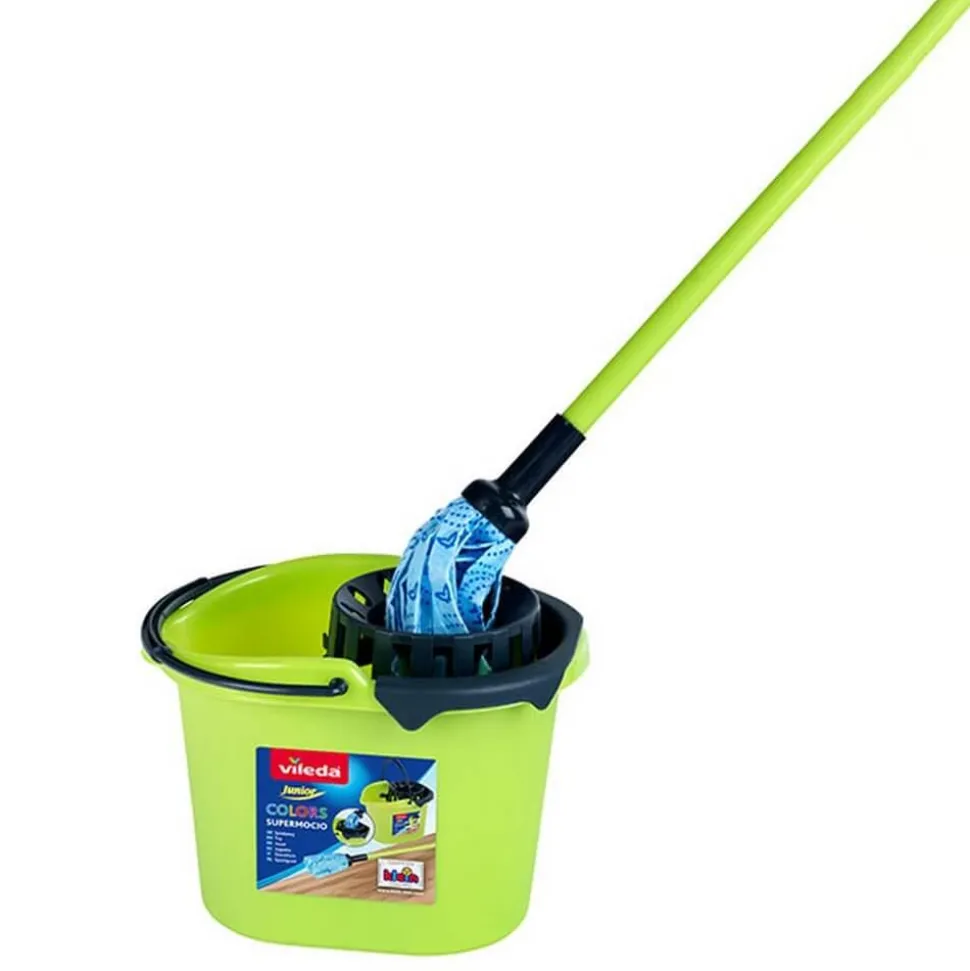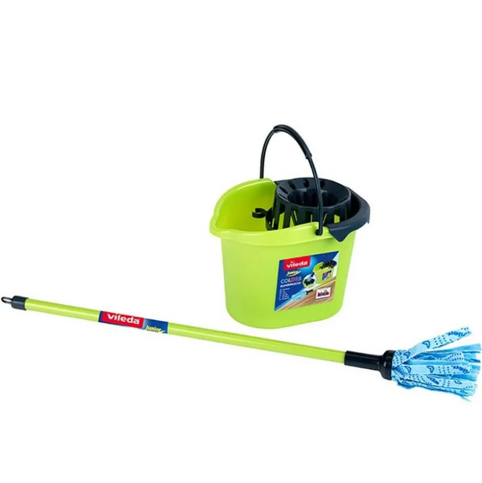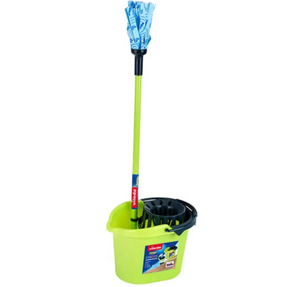 Caractéristiques détaillées : VILEDA – SET DE MÉNAGE AVEC SEAU ET BALAI À FRANGES « COLOR LINE »